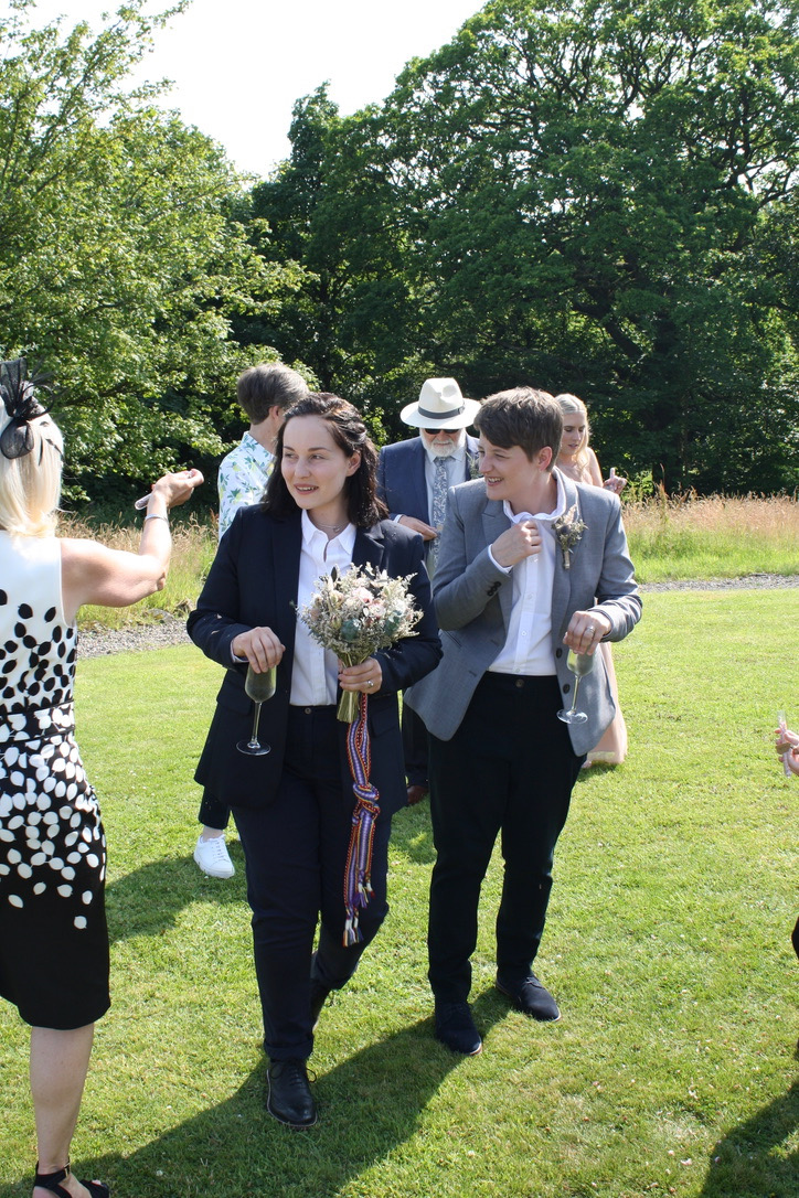 Michaela, 30, from London, found it freeing to wear a patterned suit when she married her wife. It helped her to focus on bringing her sense of humour to the alter instead; by showing up as her true self, she gave herself completely.